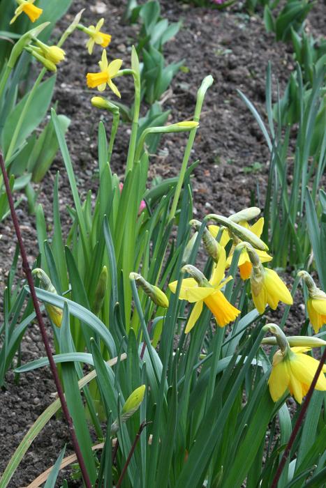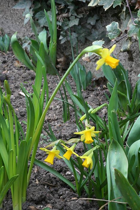 Daffodils are standing up right, the tulips are pushing through the crumbly soil and the pink hyacinths are already in bloom.